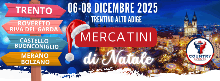 MERCATINI DI NATALE 2025 CON 2 SUPER COUNTRY NIGHT ESCLUSIVE!! PRENOTAZIONI ENTRO IL 31 OTTOBRE!! ❤️ 1° giorno: TRENTO, CASTELLO […]