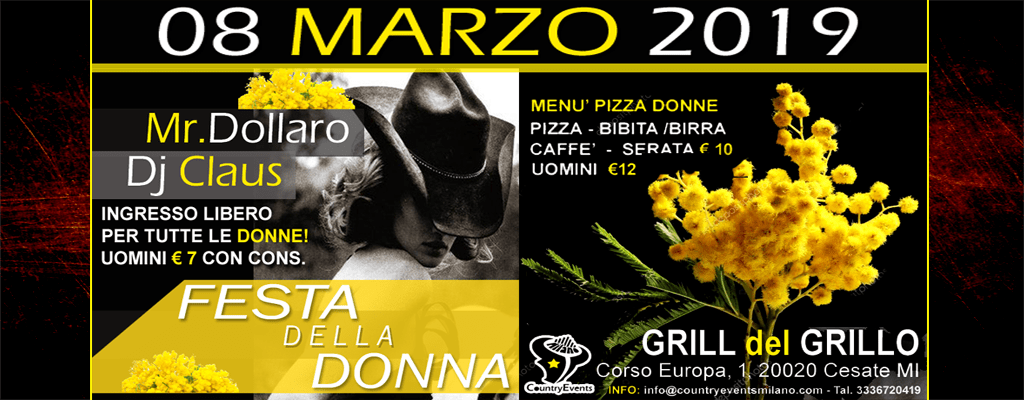 Venerdì 08/03/19 Festa della Donna e Country Night!!