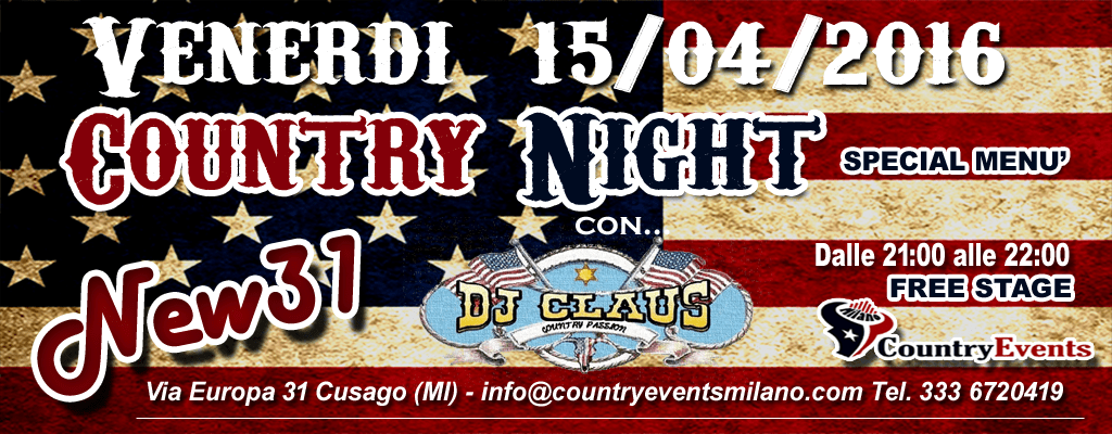 Venerdì 15/04/2016 nuvissima Country Night al New31 ex Apaloosa Pub di Cusago MI).