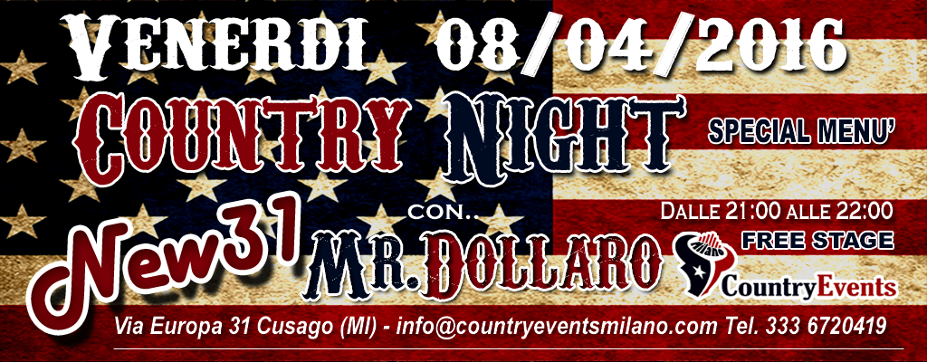 Venerdì 08/04/2016 nuvissima Country Night al New31 ex Apaloosa Pub di Cusago MI).