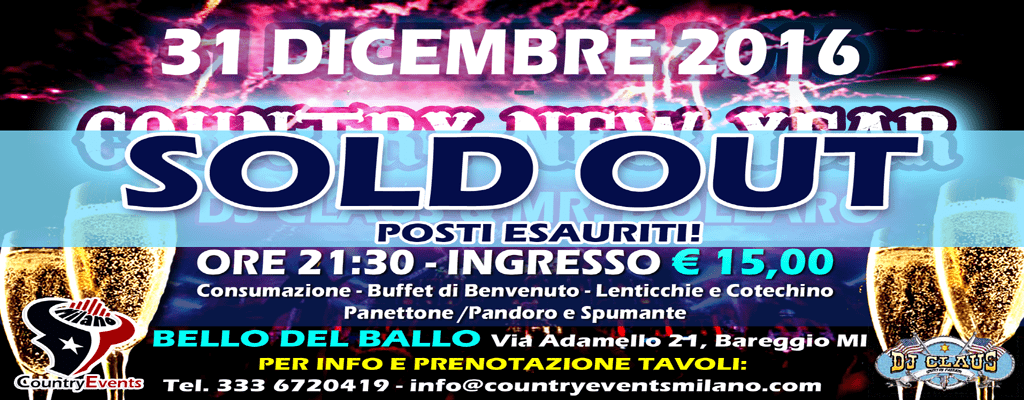 E’ l’evento che aprirà le porte al 2017!! Un capodanno Country davvero esclusivo al Bello del Ballo di Bareggio (MI), inizia il nuovo anno con un delizioso dopocena senza freniiiii!! Lasciati travolgere dalla Country Music più attuale e l’animazione di Dj Claus e Marco Dollaro che vi accompagneranno fino alla prima alba del 2017!