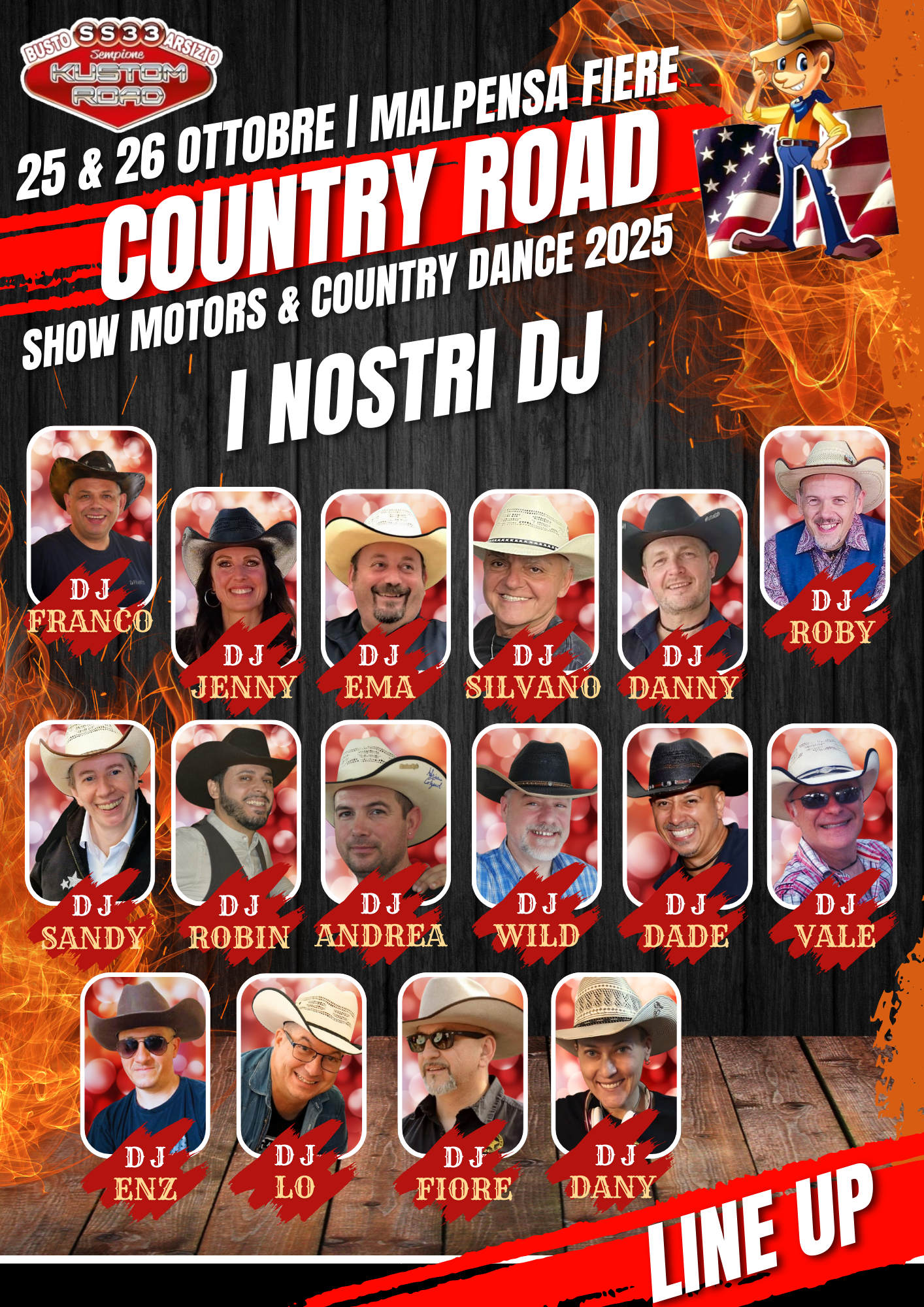 Al Country Road 2025, vi aspetta una super line-up di DJ!! Ognuno di loro porterà il proprio stile, la propria energia e il proprio amore per il country. Che siate pronti per una line dance, un catalan o un two-step, la pista sarà il vostro unico palcoscenico!!!