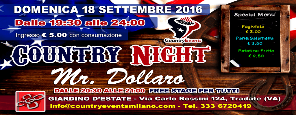 CountryEvents Milano vi aspetta con Mr. Dollaro per una sssuuupppeeerr Country Night sotto le stelle!!!