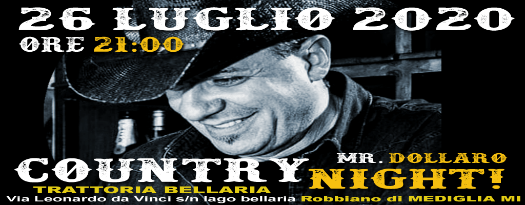 Domenica 26 luglio 2020 COUNTRY NIGHT alla Trattoria Bellaria di Robbiano di Mediglia MI. Location davvero molto bella con un fantastico panorama e una super PISTA!! Ad attendevi in consolle Mr.Dollaro.