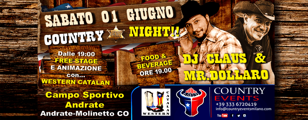 Sabato 01/06/19 super Country Night con Dj Claus e Mr. Dollaro. Dalle 19:00 alle 21:00 animazione e stage con Caterina di Western Catalan.