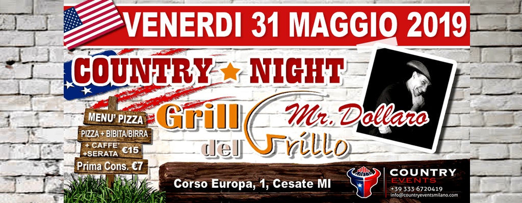 Venerdì 31/05/19 CountryEvents Milano insieme a Mr.Dollaro vi aspetta per una fantastica Country Night al Grill del Grillo di Cesate!!!
