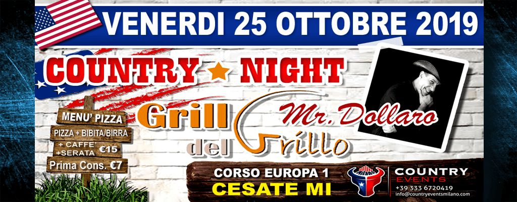 Venerdì 25/10/19 CountryEvents Milano insieme a Mr.Dollaro vi aspetta per una fantastica Country Night al Grill del Grillo di Cesate!!!
