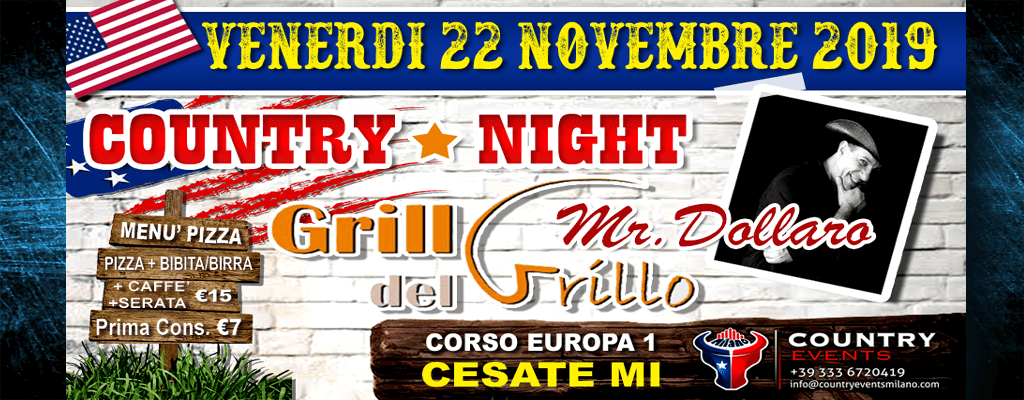 Venerdì 22/11/19 CountryEvents Milano insieme a Mr.Dollaro vi aspetta per una fantastica Country Night al Grill del Grillo di Cesate!!!
