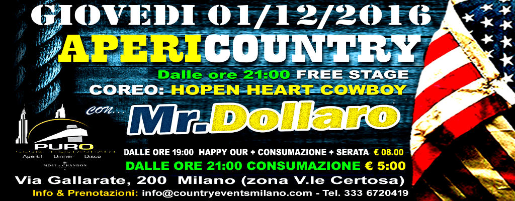 Giovedì 01/12/2016 Country Night con Mr. Dollaro al Puro Milano.