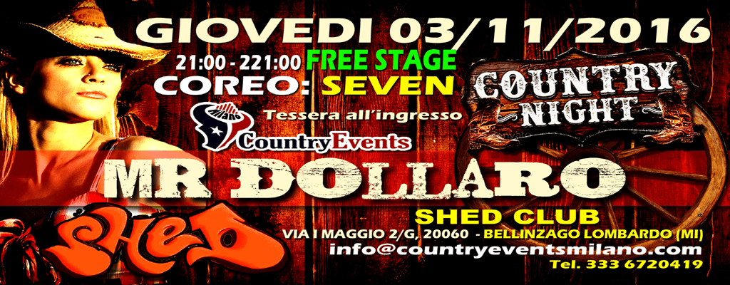 Giovedì 03/11/2016 County Night allo Shed di Bellinzago Lombardo MI.