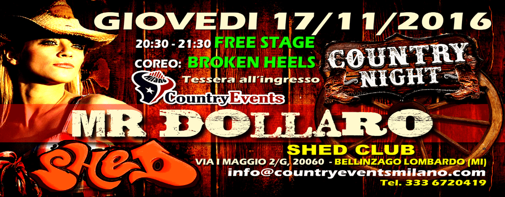 Giovedì 17/11/2016 County Night allo Shed di Bellinzago Lombardo MI.