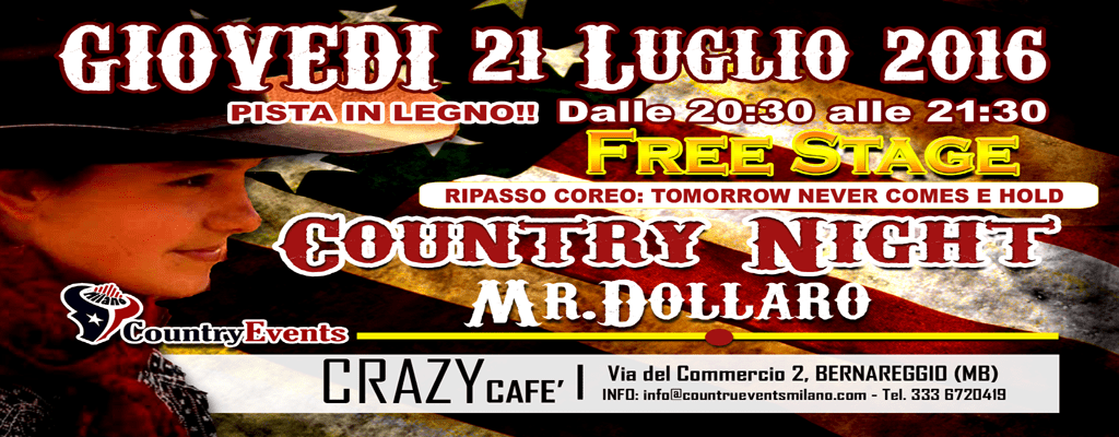 Giovedì 21 Luglio Country Night al Crazy Cafè di Bernareggio (MB)