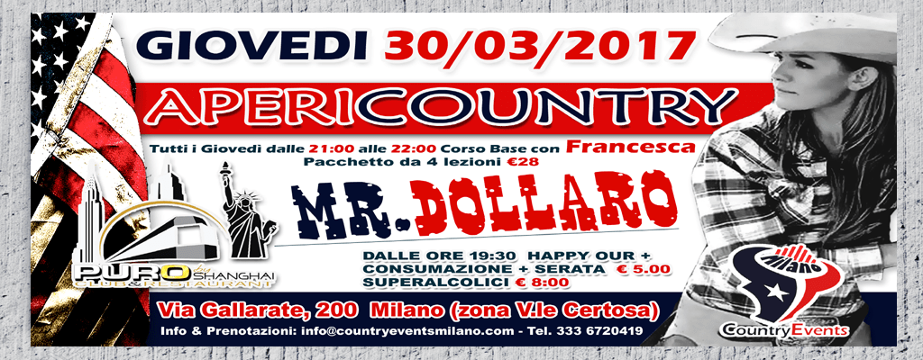 Giovedì 30/03/2017 Country Night con Mr. Dollaro in una location davvero esclusiva come il Puro Club di Milano.