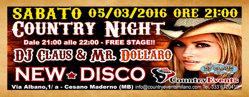 Sabato 05/03/2016 – Country Night al New Disco (ex Disco Italia) di Cesano Maderno (MB).