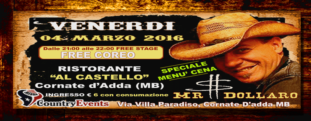 Venerdì 04/03/2016 CountryEvents Milano vi aspetta al Ristorante “AL CASTELLO” di Cornate d’Adda (MB) per una superissima Country Night!!