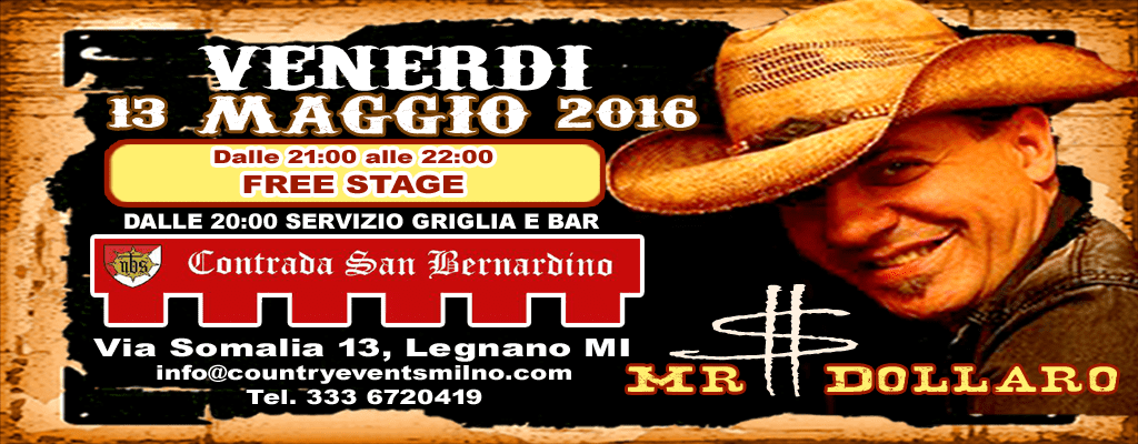 Venerdì 13/05/2016 Vi spettiamo per un sssuuupppeeerrissima Country Night al Maniero di San Bernardino di Legnano (MI), in consolle Mr. Dollaro.