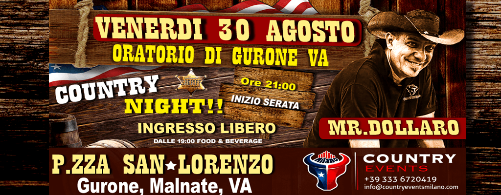 Venerdì 30 Agosto ore 21:00 Country Night con Mr. Dollaro all’Oratorio di Gurone Va.
