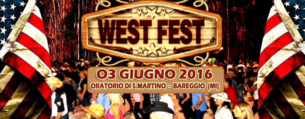 03/06/2016 – Un SUPPPPPEEEER evento country alle porte di Milano!! CountryEvents vi aspetta all’oratorio di Bareggio per il WEST FEST 2016. Stage di country line dance con VALERIA e tanta Country Music con la mitica FIORELLA MONDO E LA SUA BAND, DJ CLAUS E MR. DOLLARO!!